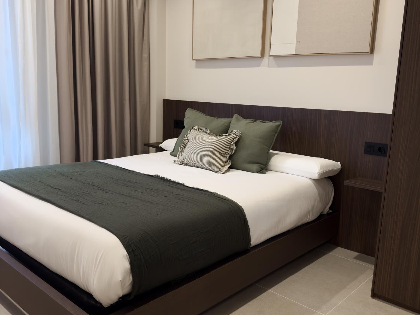 Amplio salón-comedor con cocina equipada, dormitorio con cama doble y baño moderno. Ubicado en zona céntrica, cerca de la estación de metro de San Mamés y la estación Intermodal de buses.
